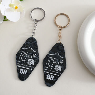 Δημιουργικά μπρελόκ με πινακίδες διαμαντιών με τετράγωνα μοτίβα υφαντικής τεχνικής για διακριτικές λύσεις επωνυμίας.